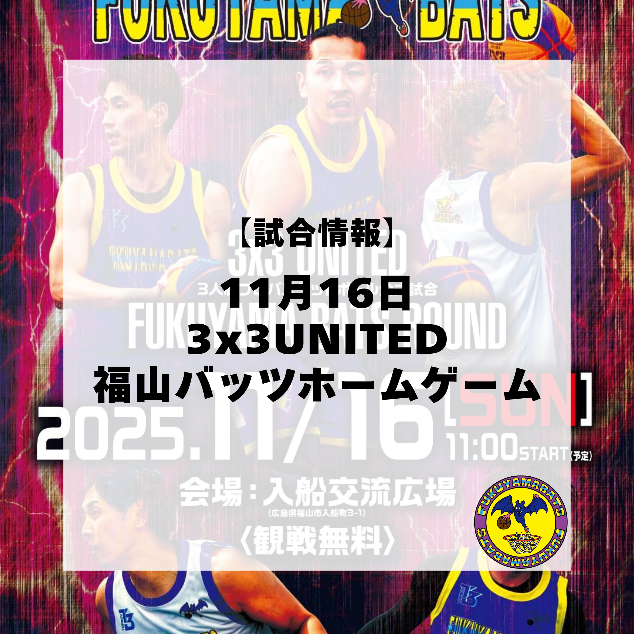 2025.10.29【試合情報】11/16開催:3x3UNITED 福山バッツホームゲーム -